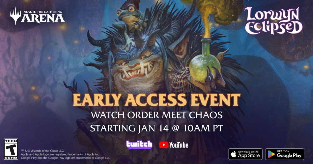 On January 14, you can see the cards in action as we hold another early-access event! We'll be unleashing Lorwyn Eclipsed on a stellar group of Magic streamers, competitive players, and other MTG Arena personalities so they can explore it across formats and events on YouTube and Twitch. Tune in starting at 10 a.m. PT!