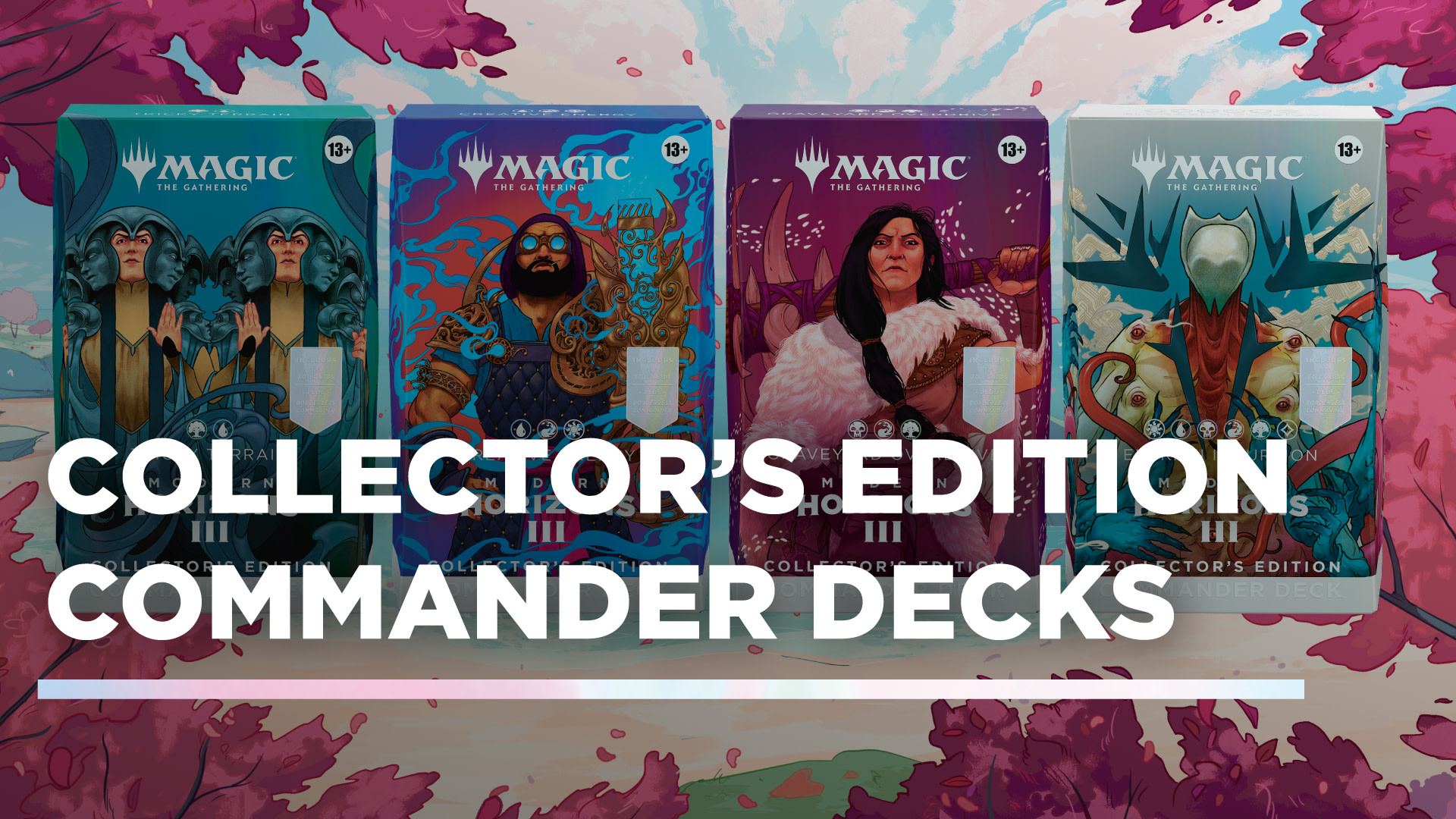 Four new Commander decks (and Collector's Edition Commander decks) will hit stores when Modern Horizons 3 releases June 14, 2024! Check out all the details and decklists here once they're previewed.