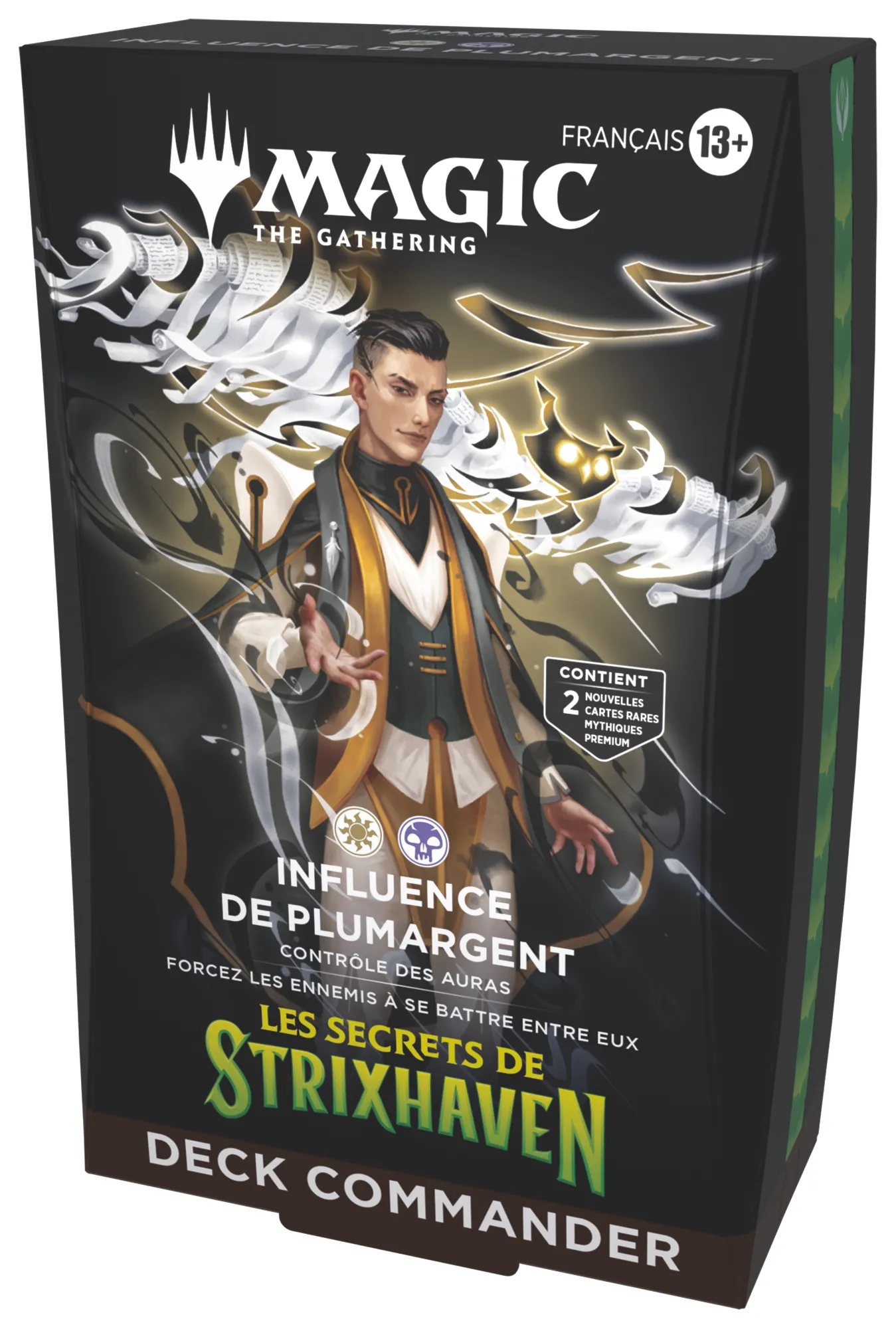 Choisissez votre institut et dominez le champ de bataille aux côtés de vos personnages préférés de Strixhaven ! Chaque deck Commander Les secrets de Strixhaven contient les éléments suivants :