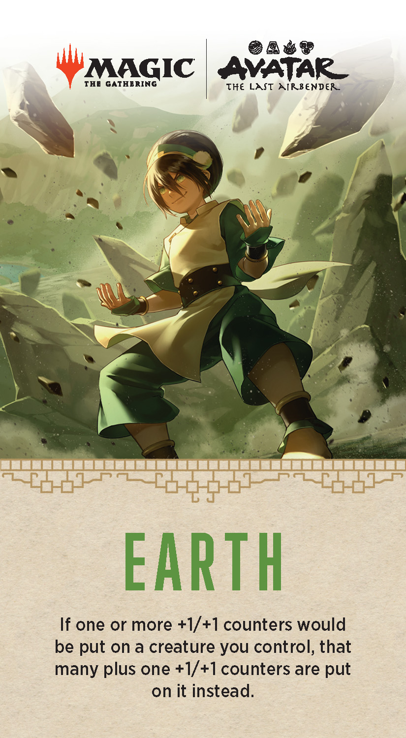 Ce ne sont pas des parties de Commander comme les autres. Ce sont des affrontements avec des adversaires qui essaient, eux aussi, de maîtriser les quatre éléments. Commencez par maîtriser l’élément le plus proche de vous en remplissant les conditions. Ensuite, vous pourrez passer à la maîtrise de l’élément à votre gauche, et ainsi de suite dans le sens des aiguilles d’une montre jusqu’à la maîtrise des quatre éléments. En domptant la puissance de l’eau, de la terre, du feu et de l’air, vous entrerez dans l’état d’Avatar et gagnerez un bonus considérable, à la hauteur de votre maîtrise élémentaire.