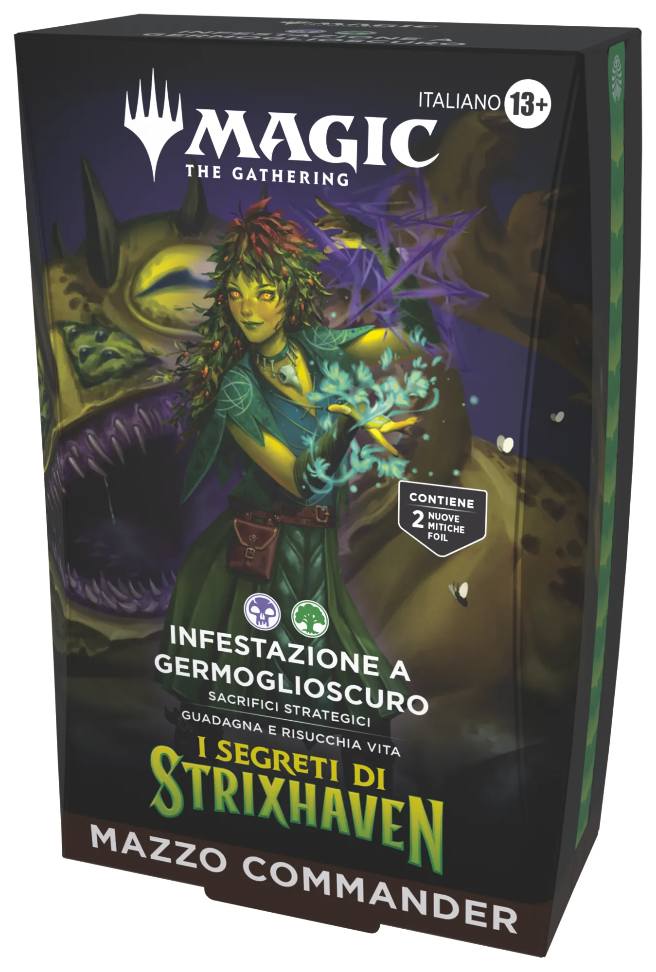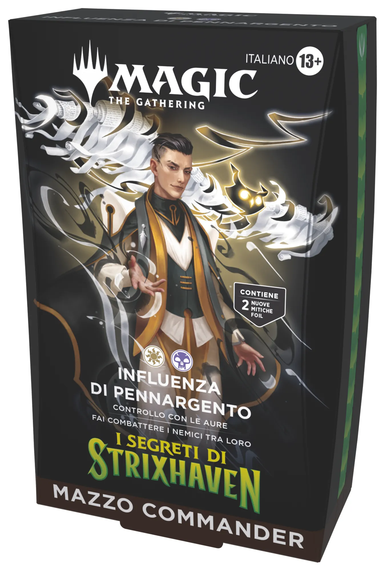 Scegli la tua accademia e prendi il comando del campo di battaglia con i tuoi personaggi Strixhaven preferiti. Ogni mazzo Commander de I Segreti di Strixhaven contiene quanto segue: