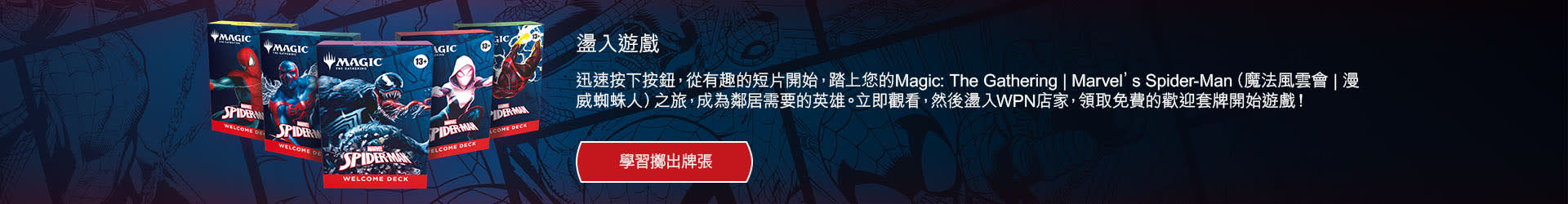 連載六十年的動漫超級英雄和反派在牌張上重現,讓您盡情收藏您的最愛。將您最愛的蜘蛛人宇宙要素引進您的魔法風雲會套牌,暢玩最強的蜘蛛人陣容!